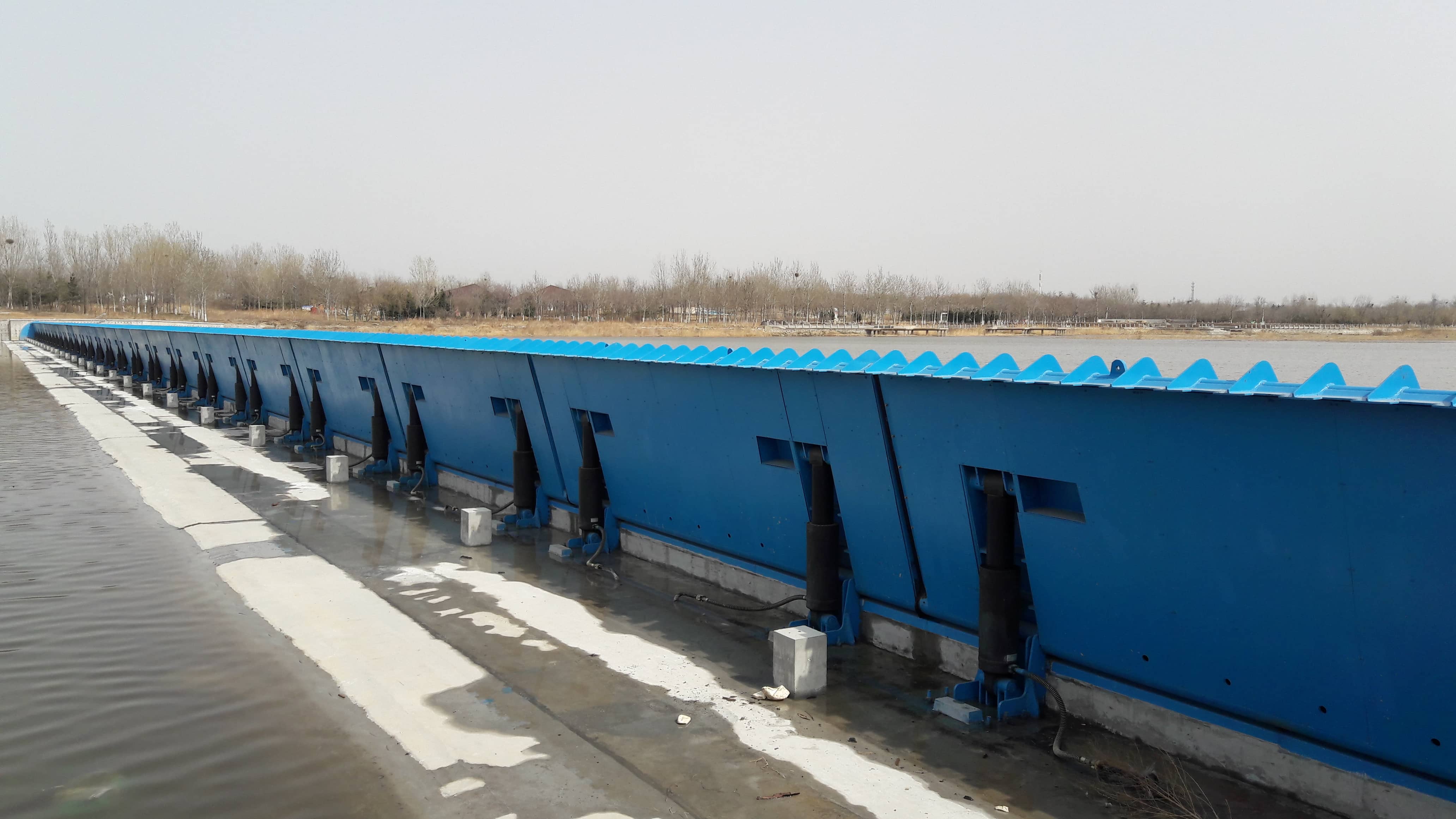 工程介紹: 工程位于黃水河入??谔?,設(shè)計防洪標準50年一遇,閘板正常擋水高度2米,建設(shè)目的是防止海水入侵,涵養(yǎng)淡水水源。